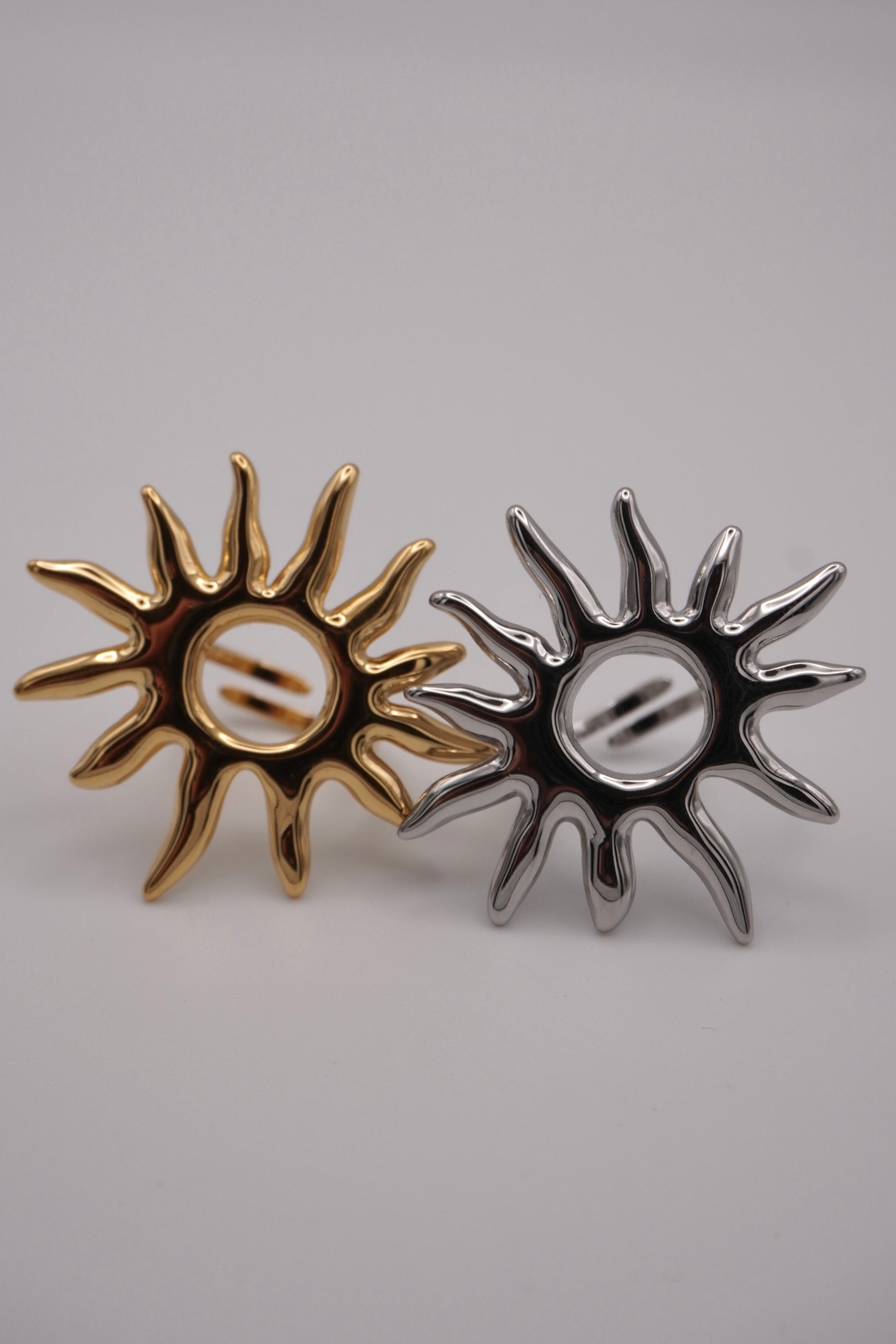 El anillo Nour captura la esencia del sol marroquí con su diseño radiante y escultórico. Elaborado en acabado metalizado brillante, es una pieza atrevida y luminosa que transforma cualquier look. Inspirado en el arte bereber y la fuerza del desierto, es ideal para quienes buscan un accesorio que sea posible por sí solo. Ajustable para un ajuste cómodo y seguro. Acero inoxidable.