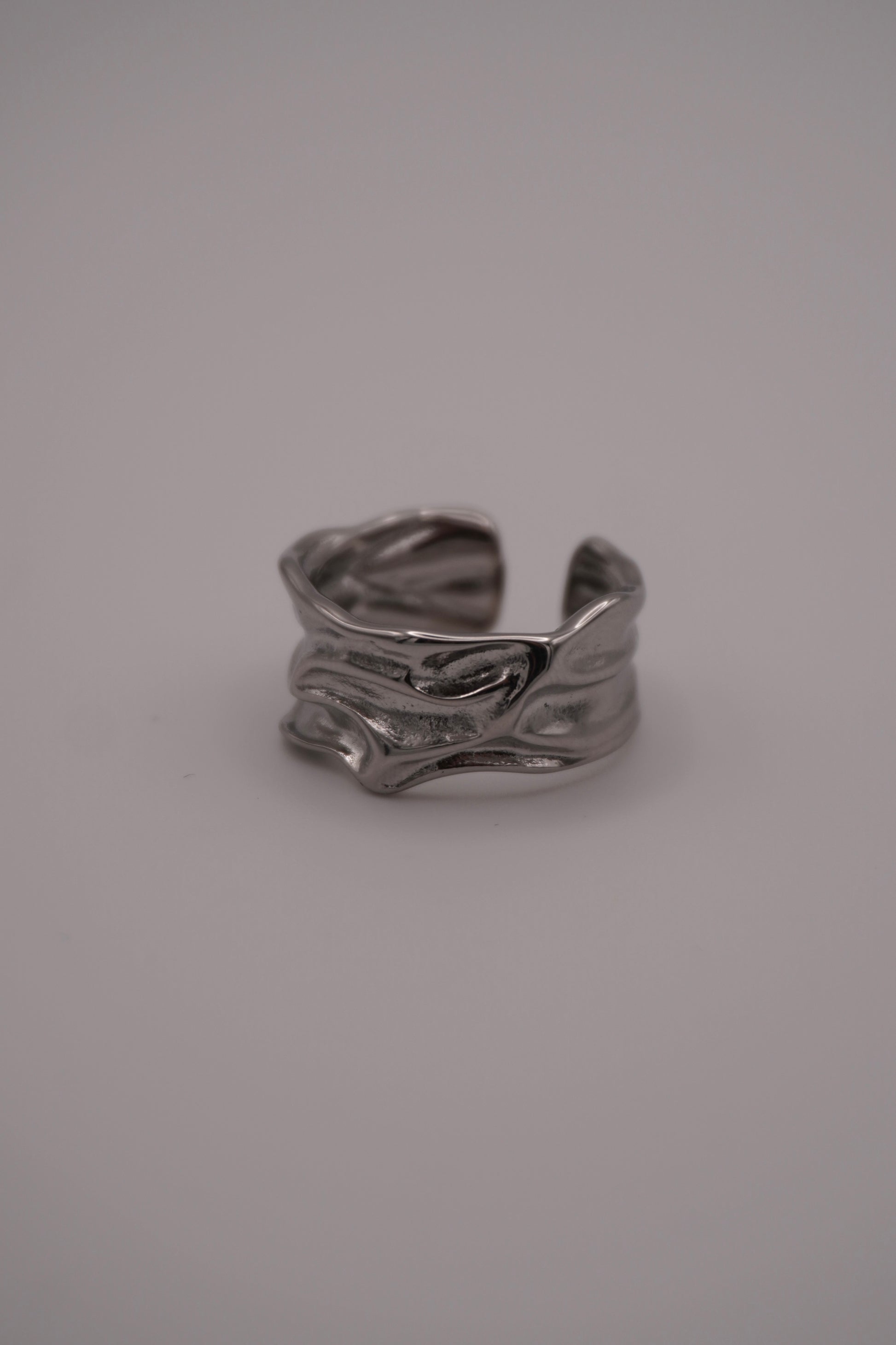 Diseño fluido y diferente. Anillo plateado de acero inoxidable con textura líquida que aporta carácter y personalidad.